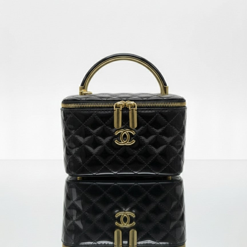 The Quilted Small Top Handle Vanity Case With Chain Black
